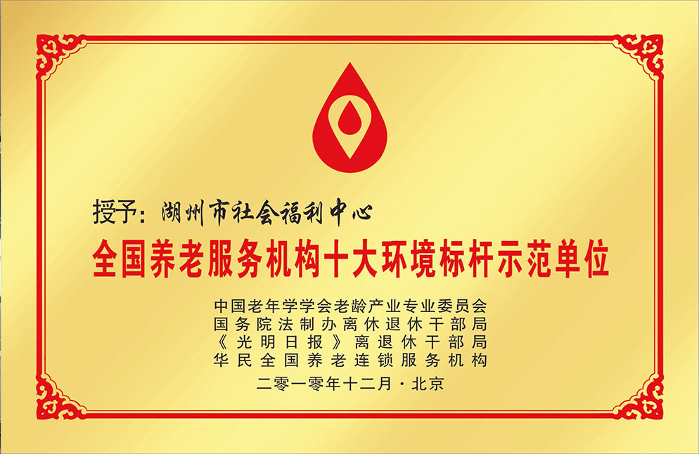 2010年获全国“养老机构十大环境标杆示范单位”称号